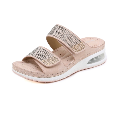 C321-3 الربيع والصيف وسادة هوائية عادية أسفل حجم كبير الخياطة الموضوع إسفين الصنادل مريحة حجر الراين