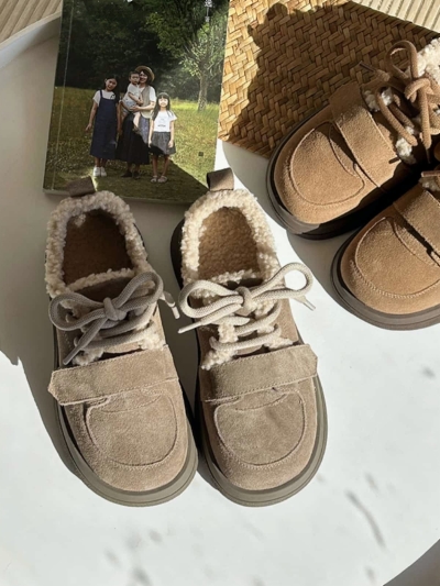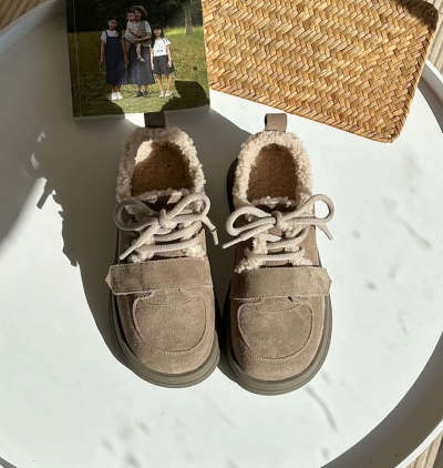 Leather round head thick-soled snow boots winter imitation lamb wool cute thermal shoes