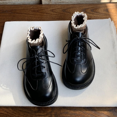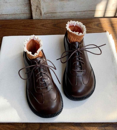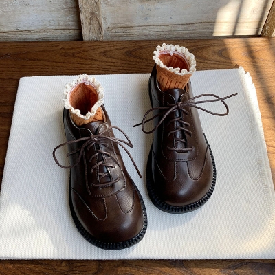Autumn Leather Lace-up Shoes Retro Japanese Design
