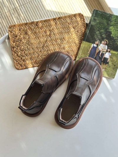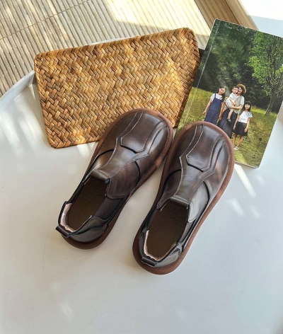 Leather Round Head Strap-Up Flat Bottom Martin Boots Comfortable Soft Sole Short Boots