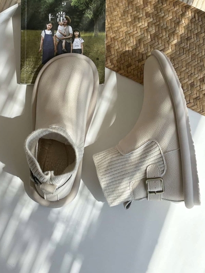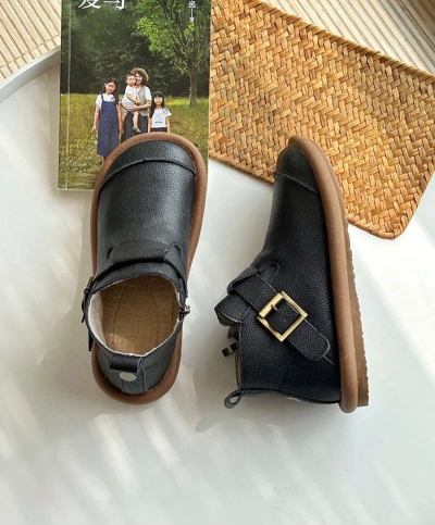 Round head flat bottom short boots new belt buckle fashionable soft sole boots