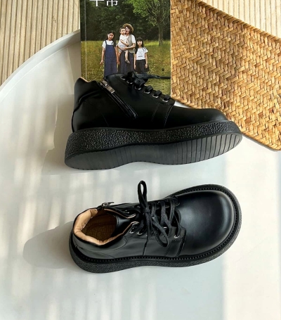 Leather round head lace-up thick-soled big-head shoes autumn heightening short boots