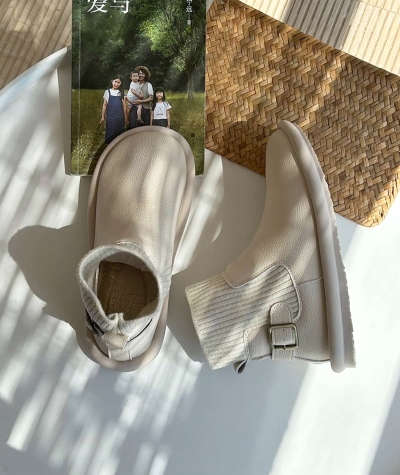 Round head flat bottom short boots autumn and winter new beige fashion soft-soled socks boots
