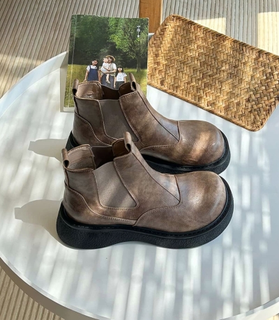 Round head thick sole big head Martin boots new middle heel fashion short boots women