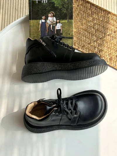 Round head lace-up platform big head shoes short boots autumn black Martin boots small leather shoes women
