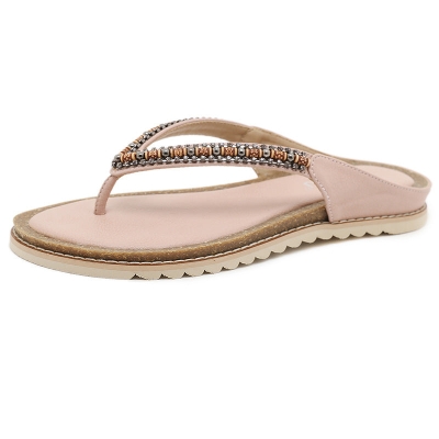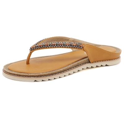 BY2006-7 Rhinestone Flip-Flops Comfortable All-Match Beach Large Size Sandals Women | Flat Sandals