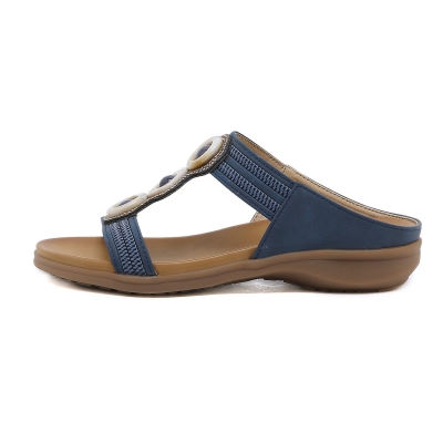 9830-6 Vintage Beaded Sandals Comfortable round Toe Seaside Vacation Large Size Shoes | Flat Sandals
