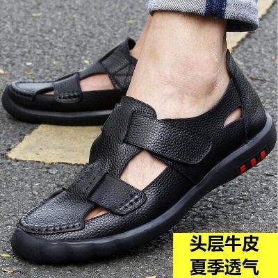 Men's sandals leather summer soft sole non-slip casual hole shoes men's breathable first layer cowhide sandals