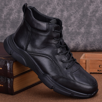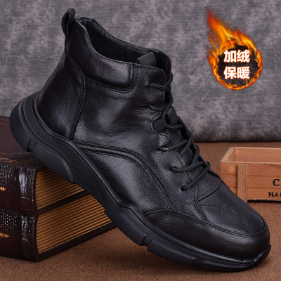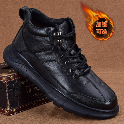 Genuine leather velvet warm high-top casual leather shoes men's full cowhide thick-soled non-slip outdoor shoes