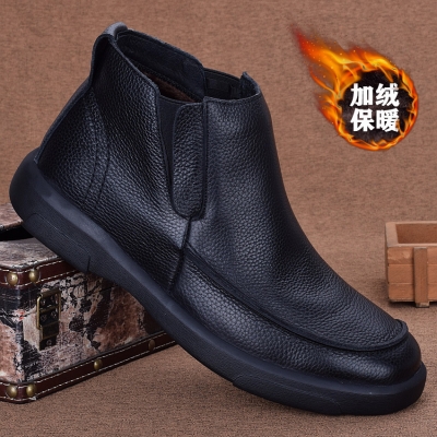 Casual leather shoes men's genuine leather velvet thermal cotton shoes men's winter business high-top first-layer cowhide non-slip