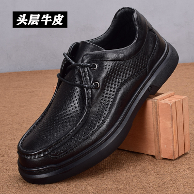 Hollow leather shoes men's genuine leather summer breathable hole shoes first layer cowhide wide head casual business men's shoes