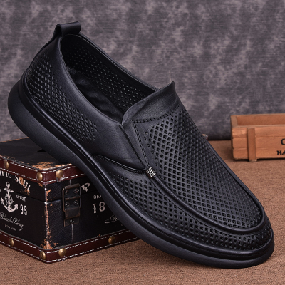 Summer business leisure hollow leather shoes men's leather sandals breathable soft sole large size hole shoes soft leather