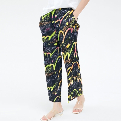 Casual Pants Printed All-Matching Loose Waist Slimming Draping Effect Straight-Leg Pants Pants for Women