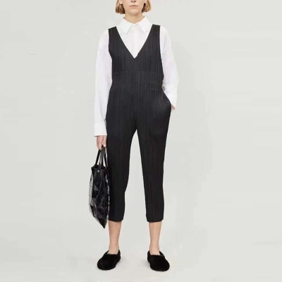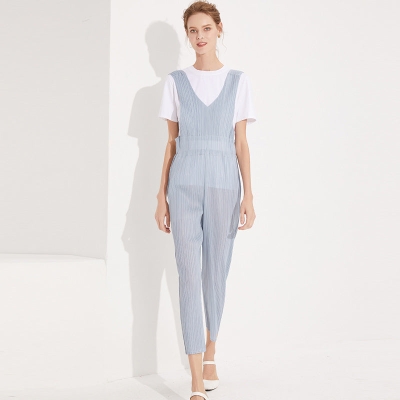 Casual Pants Waist-Tight Slimming and Straight Suspenders Pleated Suspender Pants Trendy Women