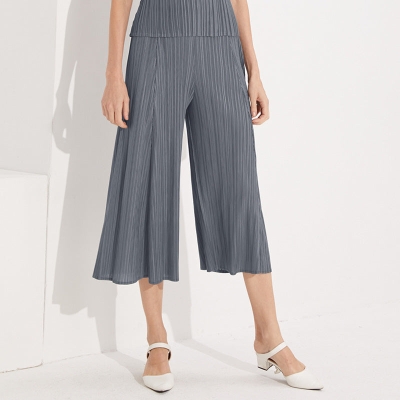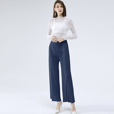 Casual Pants Simple Loose Comfortable Stretch Pleated Trousers Split Straight Pants Women