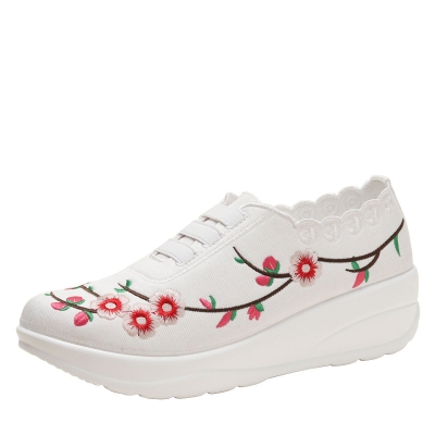 Fly-Knit Sneakers Women's Soft Bottom Breathable Embroidered Lightweight Casual Slip-on Pumps