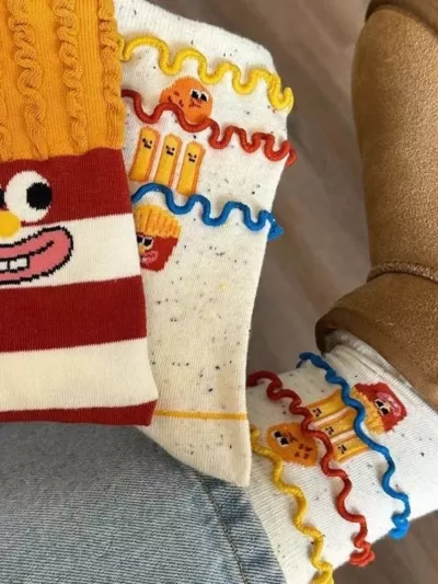 [3 Pairs] Spring Summer Pure Cotton Thin Funny French Fries Street All-Match Cute Fashion