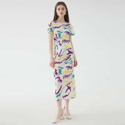 Design Sense Niche T-shirt round Neck Loose Graffiti A- line Skirt Top for Women