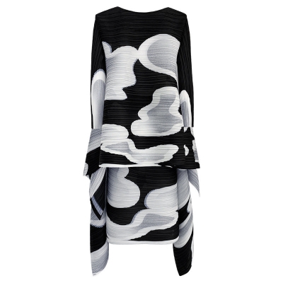 Irregular Black and White Set Loose round Neck Long Sleeve T-shirt Skirt Two-Piece Set for Women