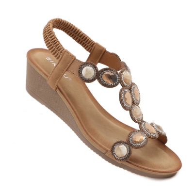 3217-5 Ethnic Style Bohemian Vintage Rhinestone Wedge Large Size Sandals
