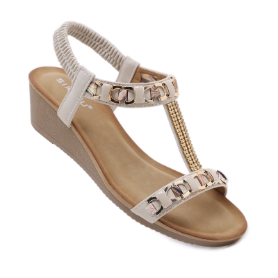 3217-2 Ethnic Style Bohemian Retro Rhinestone Wedge plus Size Sandals