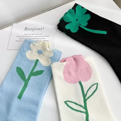 [2 Pairs] Flower Socks for Women Spring Summer Pure Cotton Trendy Flowers Blossoming