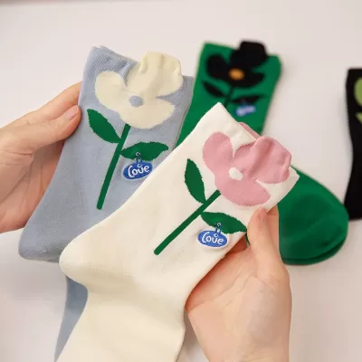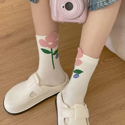 [2 Pairs] Spring Summer Pure Cotton Colorful Ribbon College Style Socks It Looks Good to Wear