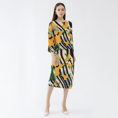 Pleated Lapel Short Sleeve Temperament Printed Single-Breasted Shirt Outfit Skirt Two-Piece Suit