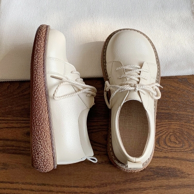 Spring Thick-soled Lace-up Round Toe Shoes Leather Aesthetic