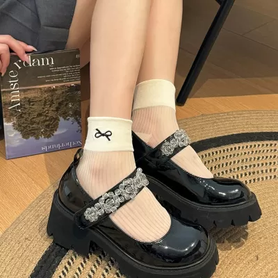 [6 Pairs] Summer Thin Popular Net Red White Velvet Summer Ice Silk Ice Socks