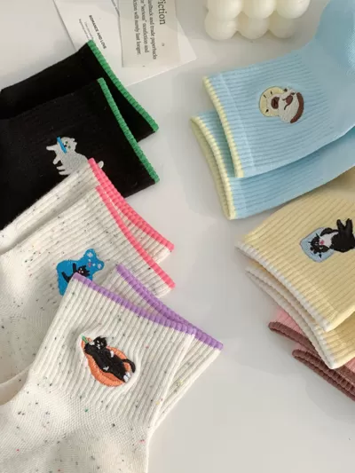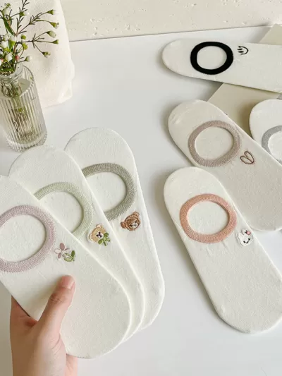 [6 Pairs] Summer Thin Cartoon Embroidery Korean Style Pure Cotton Cute Wear