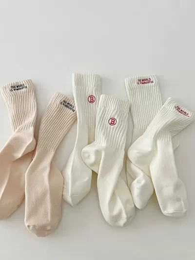 [6 Pairs] Spring and Summer Fashion Letters College Style Simple Pure Cotton Mid-Calf