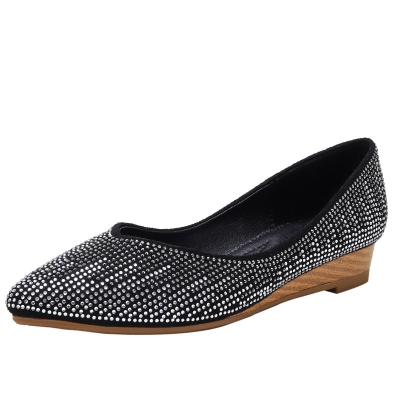 Wedge Shoes Spring and Autumn Low-Cut Rhinestone Inner Height Increase Gommino Non-Slip Mom Shoes