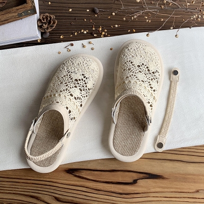 Summer Flat Lace Mesh Sandals Cotton Cool Casual Shoes