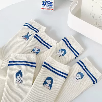 [5 Pairs] College Style Kanekalon Girls Are Very Cute Summer Matching White Shoes Skirt
