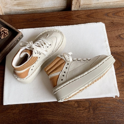 Autumn Short Boots Leather Artistic Style Chunky Sneakers