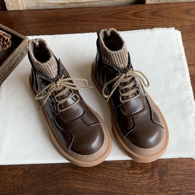 Fall Short Martin Boots Women Color-blocked Plush Cotton Style