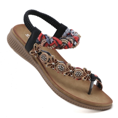 1722-1 여성을 위한 편안한 보헤미안 손으로 짠 리본 라인스톤 샌들
