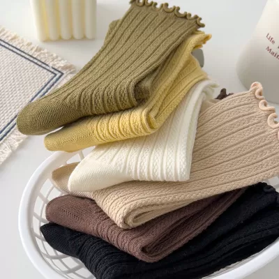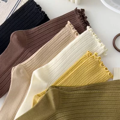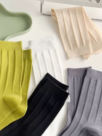 [5 Pairs] Pure Cotton Spring and Summer Color Virtual Pocket Picture Women's Thin Socks Looks Very Fashionable