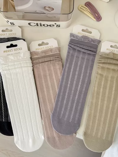 [2 Pairs] Spring and Summer Solid Color a Little Retro Bunching Socks Cashmere Material Comfortable and Soft