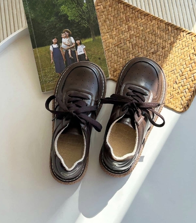 Leather round head lace-up little white shoes spring new soft-soled versatile shoes single shoes