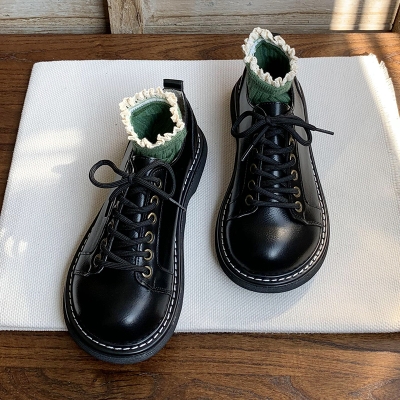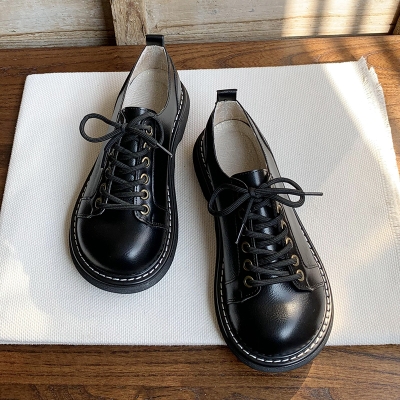 Spring Flat Vintage Leather JK Uniform Shoes Women