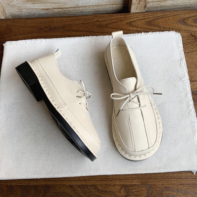 Autumn casual round-toe leather flats for women