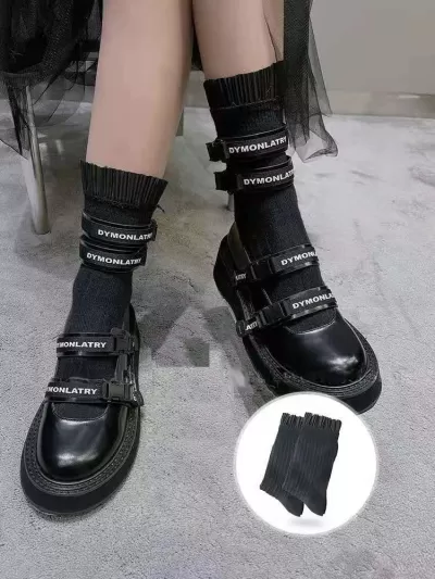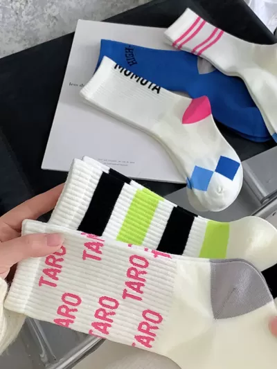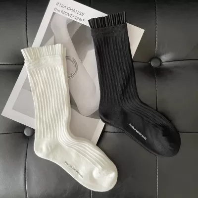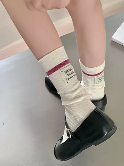 [2 Pairs] Japanese Style Mid-Calf High Length Women's Two Bars Trendy Cotton College Sports Style Cotton Material