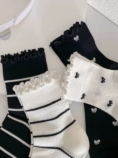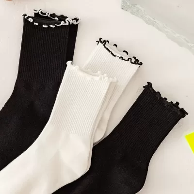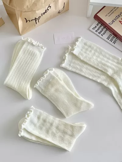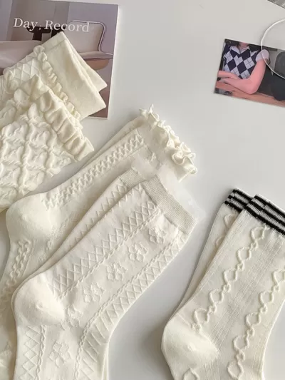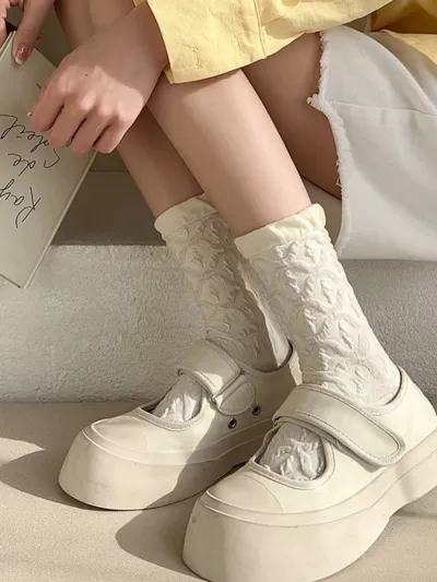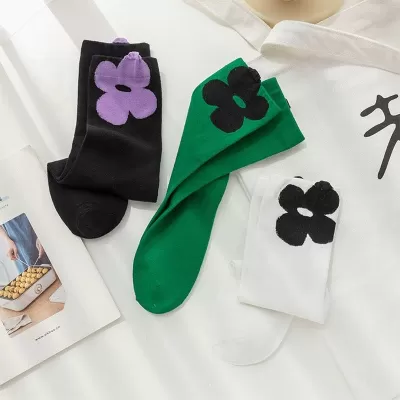 [2 Pairs] Spring Summer Pure Cotton Beautiful 2 Flowers Little Flowers 3D Tube Socks