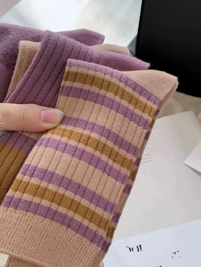 [4 Pairs] Sorry I'm Late, Girl Spring and Summer Double Needle All-Match College Style Mid-Calf