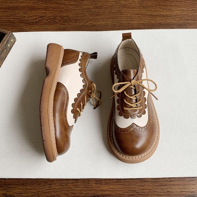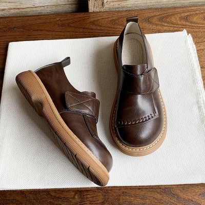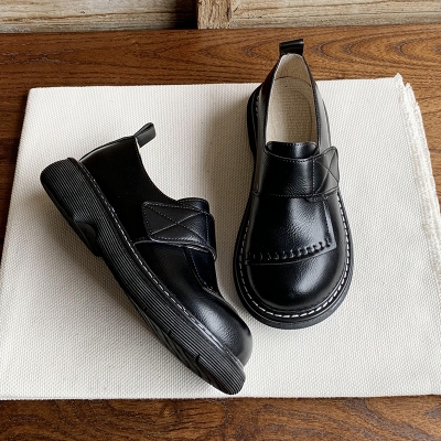 2024 Spring Women's Leather Oxfords Thick Sole Retro