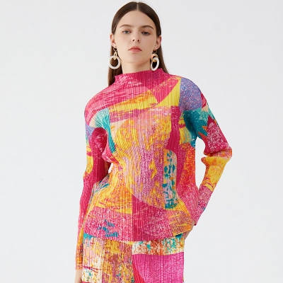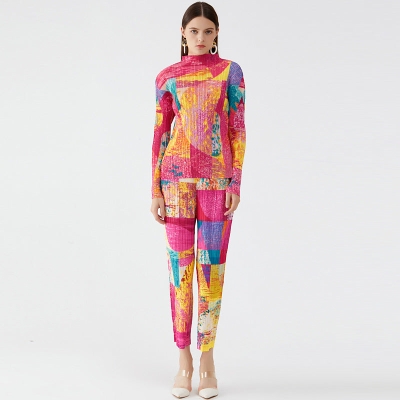 Casual Printing Suit Short-Sleeved Top Draped Pants Two-Piece Set for Women