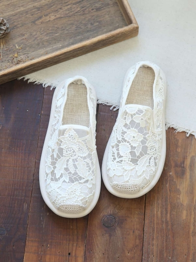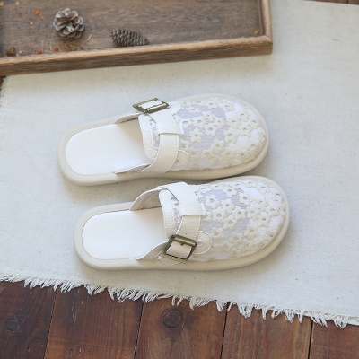 Daisy mesh round head shallow mouth flats summer cross buckle Roman sandals