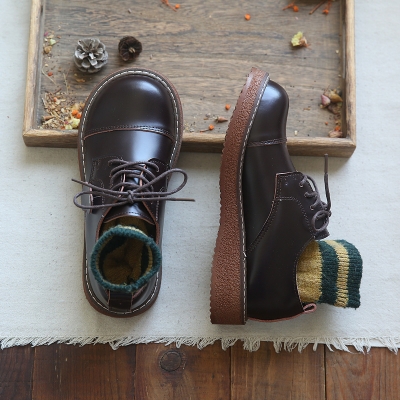 Glossy round head lace-up platform big head shoes short boots Martin boots women